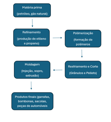 Para um melhor entendimento, um esquema de como o plástico é produzido, está descrito ao lado.